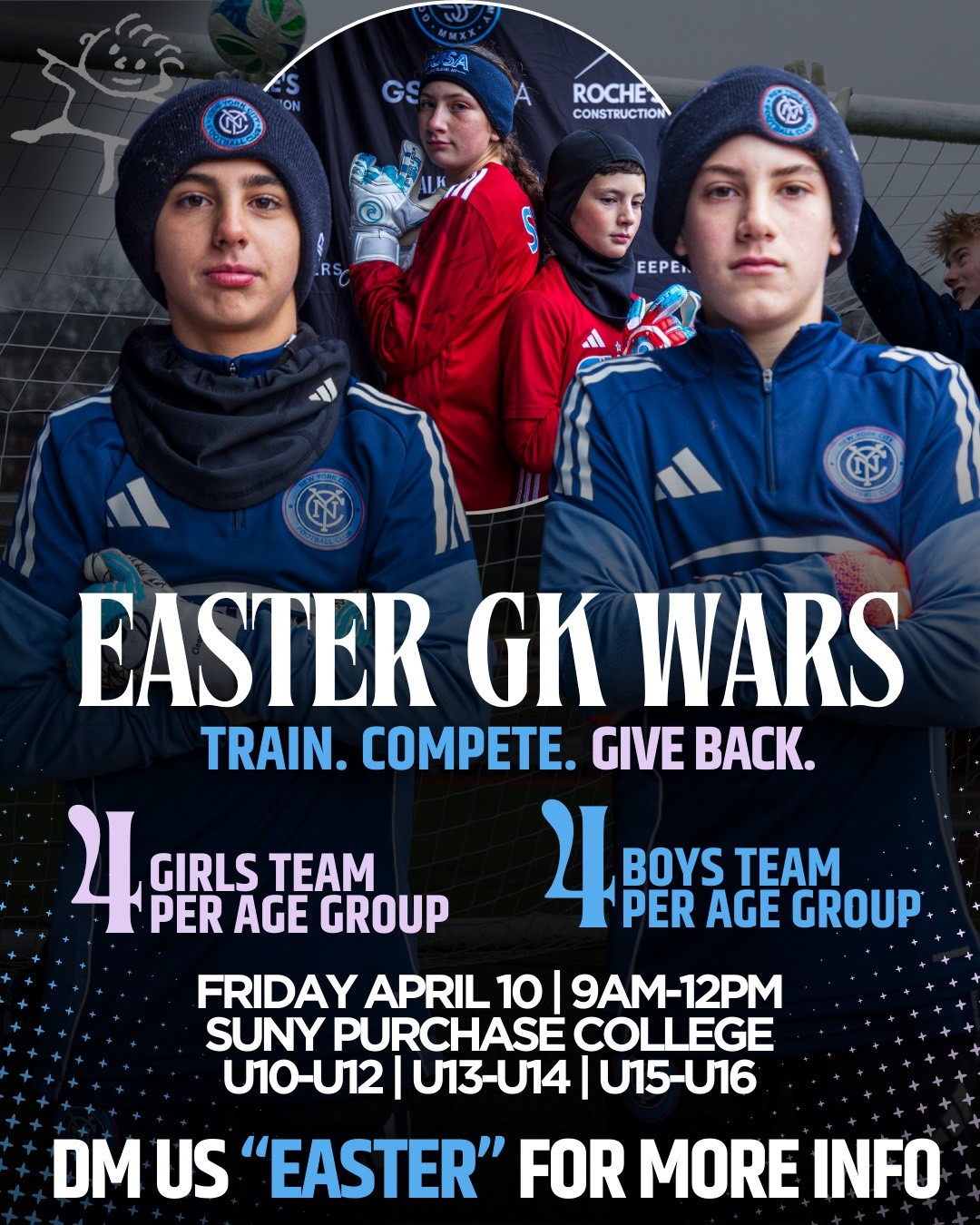 During easter break on April 10th from 9am-12pm, GSS will host a goalkeeper wars Tournament for both Girls and Boys separately, which will include a media shoot and goalkeeper camp segment at suny purchase college.